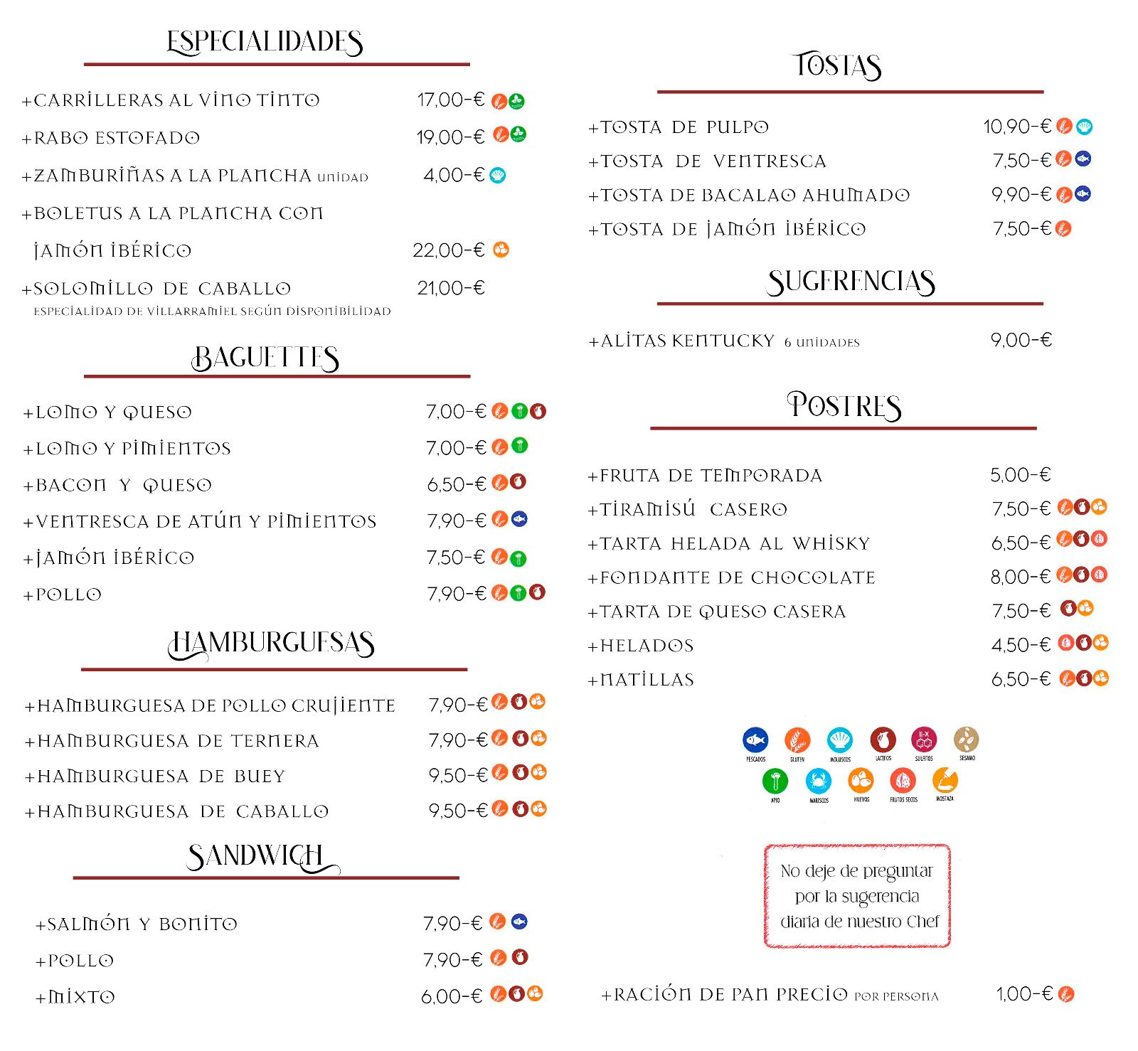 Consulta nuestra carta de especialidades, tapas, hamburguesas, vinos y postres. Productos auténticos de la zona y platos tradicionales elaborados con mimo.
